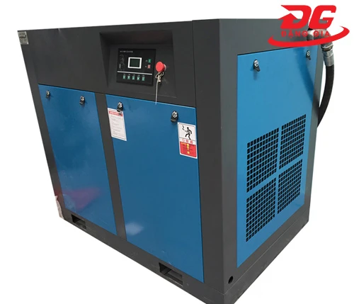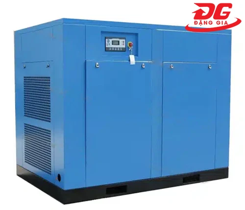 Sử dụng 2 trục vít xoắn để thực hiện quá trình nén. Không khí đi vào buồng nén, 2 trục vít quay ngược chiều nhau cuốn chặt lại.