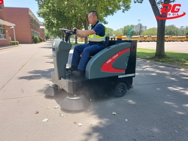 Ứng dụng máy quét rác sân trường chuyên dụng giúp nhà trường chủ động kiểm soát mọi vị trí trong khuôn viên.