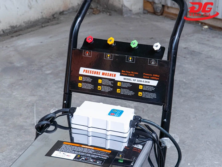 Máy xịt rửa xe áp lực cao Kungfu KF 3200-5.5KWlà thiết bị nổi bật hàng đầu về sự tiện dụng. Máy được trang bị động cơ 5,5kW cùng áp lực phun lên tới 230 bar. Sức mạnh này đủ để loại bỏ mọi mảng bám từ trên xe đến tường rêu, điều hòa.
