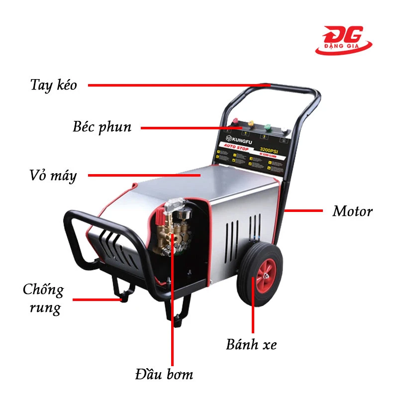 Đặng Gia là địa chỉ bán máy phun rửa xe áp lực cao Kungfu KF 3200-5.5KW chính hãng số 1 hiện nay. Đơn vị cam kết hàng chất lượng, hoạt động bền bỉ, giá bán tốt nhất thị trường.