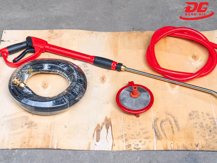 | Bộ phụ kiện đi kèm | súng phun dài, bộ lọc nước, dây cấp nước, dây dẫn cao áp, bộ 4 béc phun |
