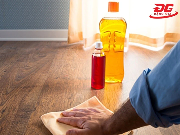 Thao tác lau nên thực hiện dọc theo chiều vân gỗ thay vì lau ngang hay xoáy tròn. Cách lau này giúp dung dịch len đều trên bề mặt, hạn chế vệt lau loang lổ và giữ màu sàn đồng nhất, tự nhiên hơn sau khi khô.